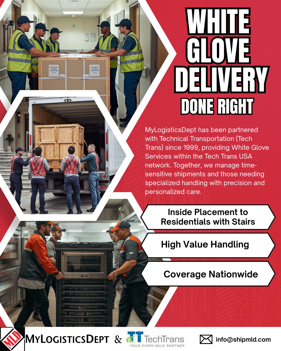 For high-value, technical, and sensitive shipments, MyLogisticsDept delivers with precision through our nationwide White Glove network with Tech Trans.