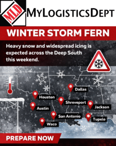 Due to the forecasted heavy snow and widespread icing across the Deep South, some freight operations may be disrupted.
